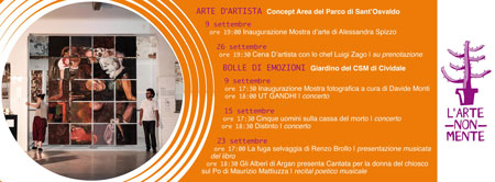 si inaugura “Bolle di Emozioni”, mentre, sempre sabato 9 settembre alle 19,00 a Udine nel Parco di Sant’Osvaldo, si inaugura,