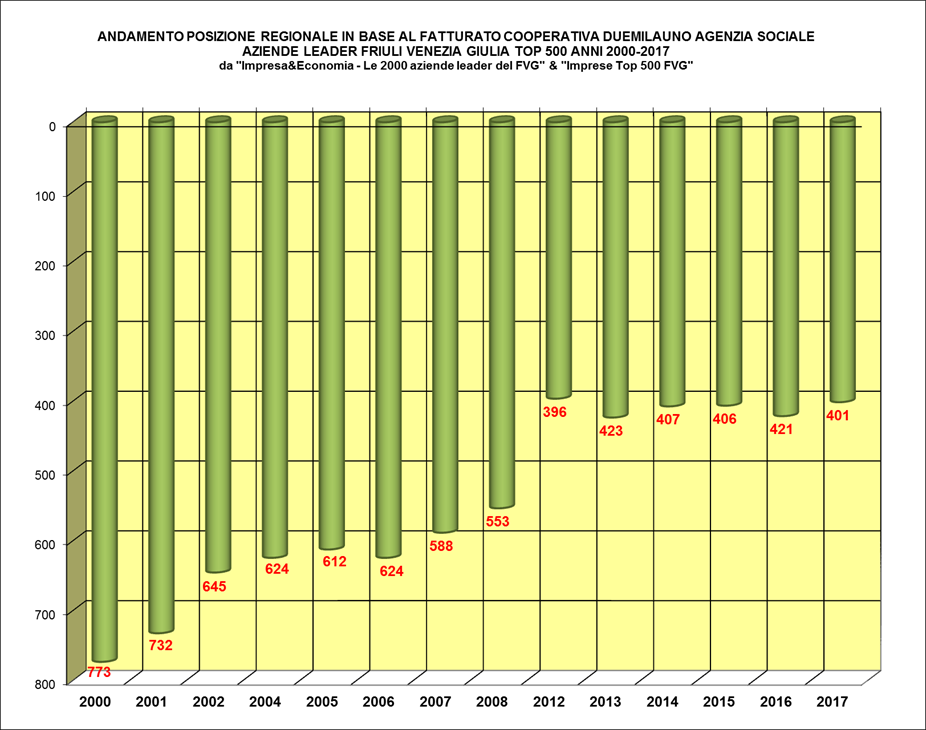 di Impresa&Economia pubblicato dal 2000 al 2008, la Cooperativa dall’anno 2000 è avanzata gradualmente di posizione
