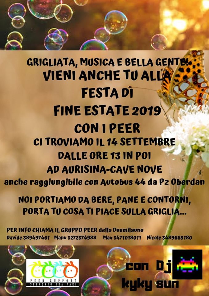 Grigliata, musica e bella gente. Vieni anche tu alla festa di fine estate 2019 con i peer >>
