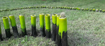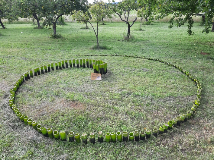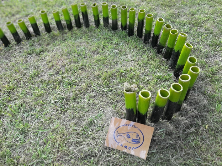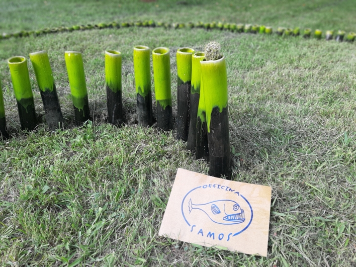Nella foto particolare dell'installazione realizzata da Officina Samos per Frontiere dei Lunatici, una spirale fatta di 174 tubi di ceramica smaltata in onore dell' Area 174, spazio liberato nel Parco Basaglia, ex ospedale psichiatrico di Gorizia.Galleria Installazione Officina Samos >>